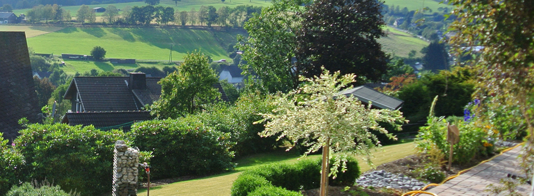 Von hier aus können Sie einen unvergleichlich weiten und atemberaubenden Blick über den Ort und das Tal in Richtung Rothaarkamm genießen. Unsere großzügige Terrasse sowie die hölzerne Hollywoodschaukel im Garten laden vor allem in den Sommermonaten und Abendstunden dazu ein, sich das herrliche Landschaftspanorama anzuschauen, dass Ihnen die unberührte Natur bietet.